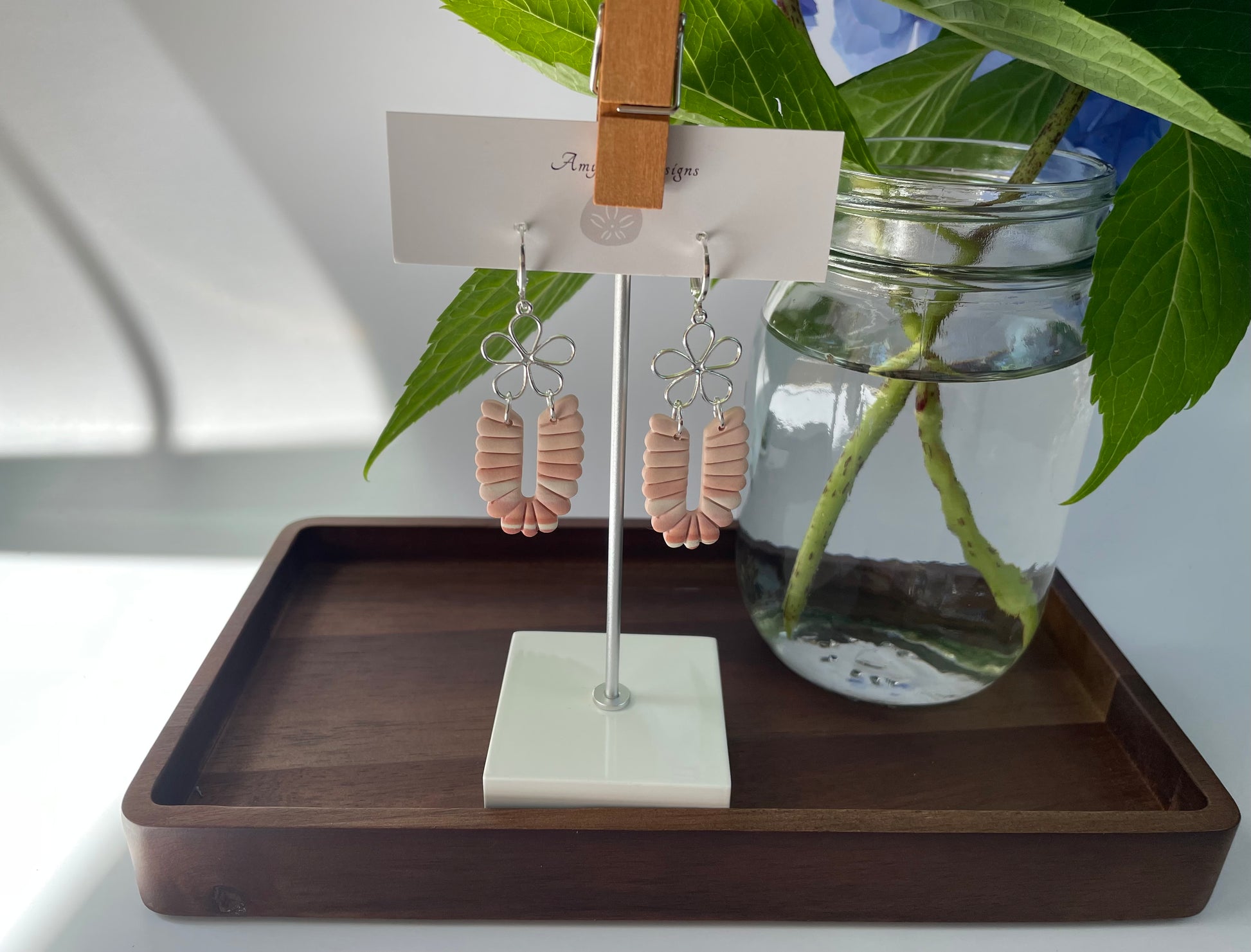 Light weight polymer clay earrings w/silver daisy. One style is medium in size and is a mauve color. The second is smaller multi-colored w/silver daisy