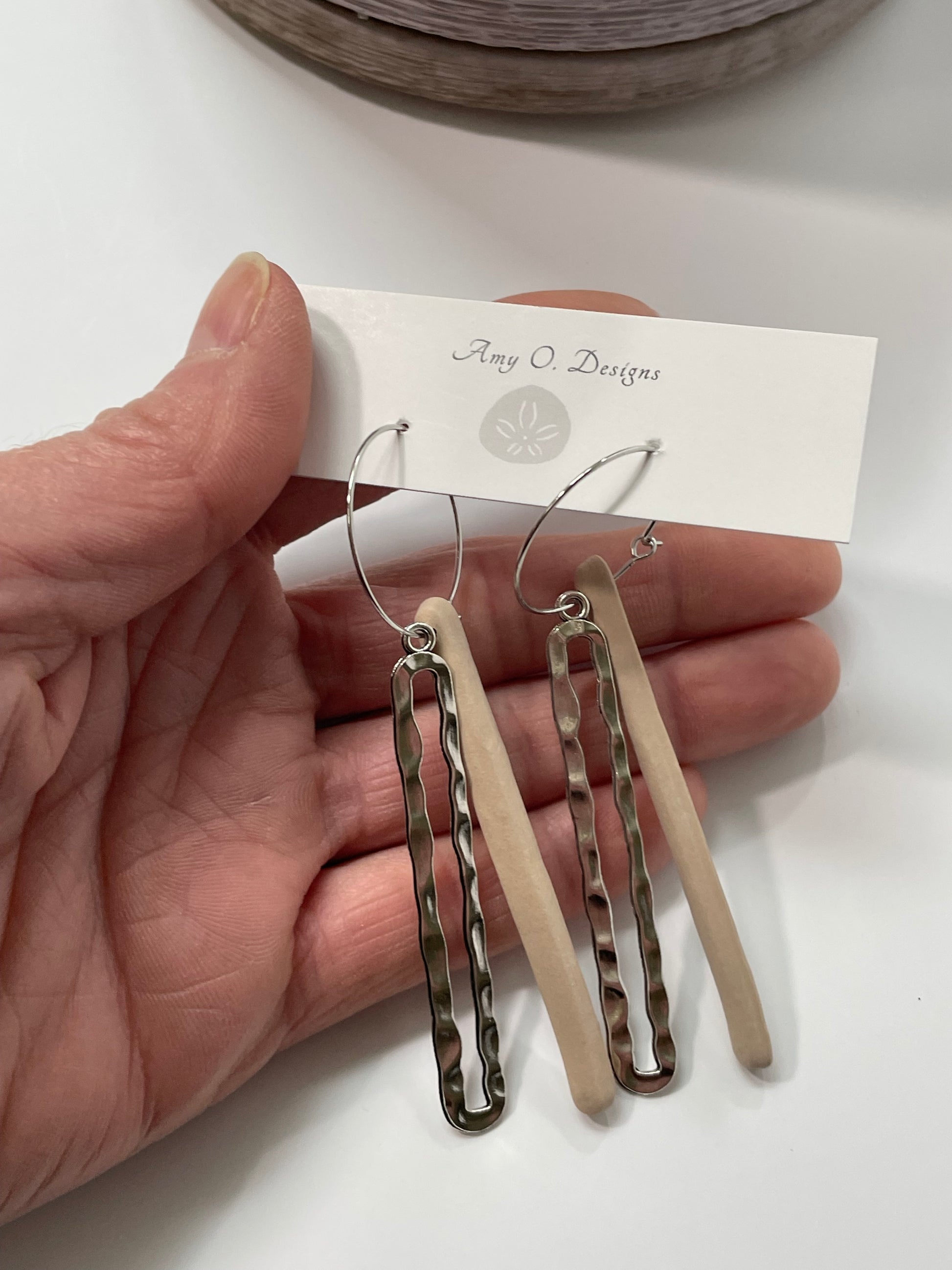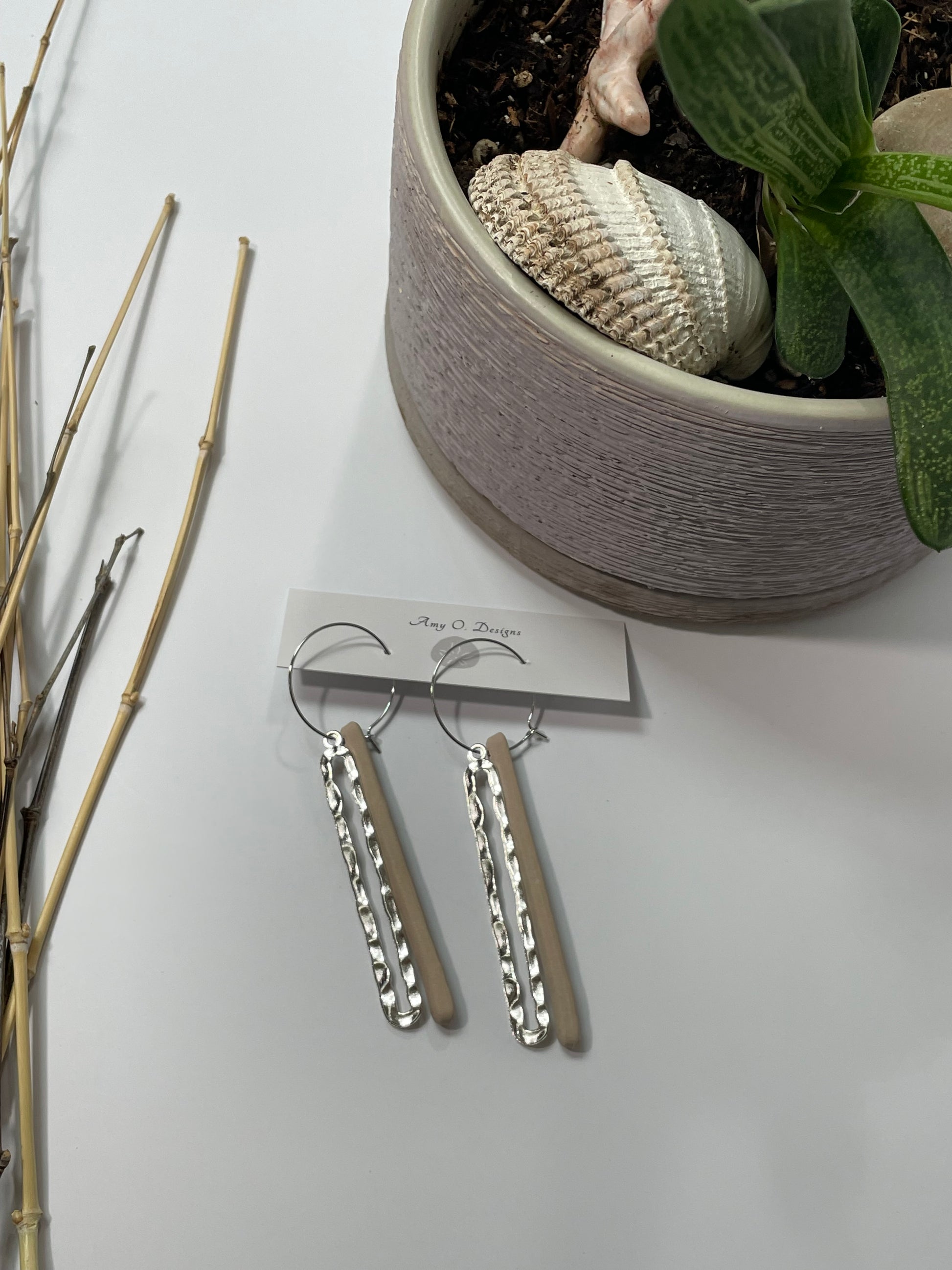 Light weight tan dangle. Silver hoop is stainless steel and hypoallergenic.