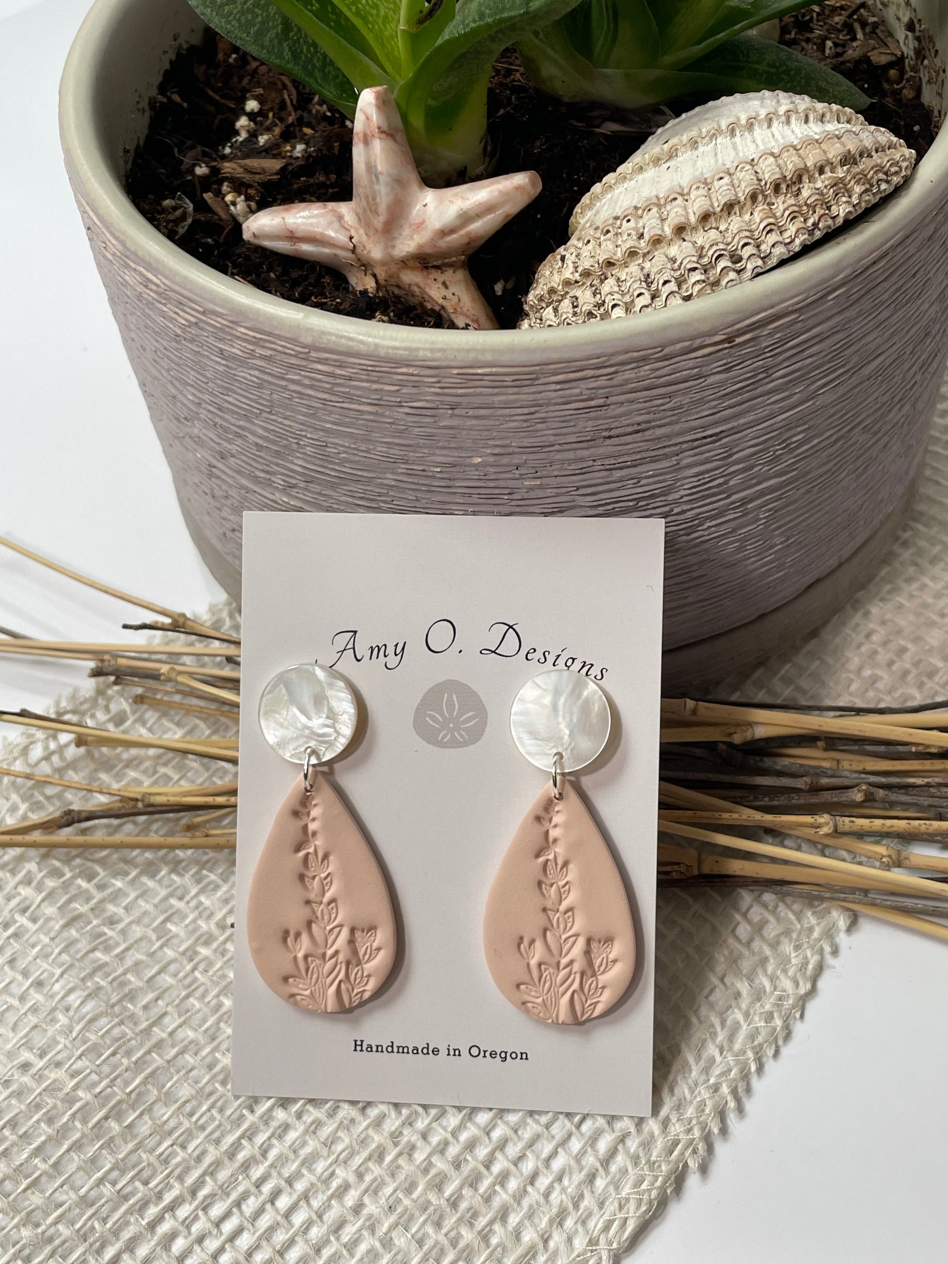 Earrings are made of Polymer clay. Shell stud circle w/silver hypoallergenic stud post.
