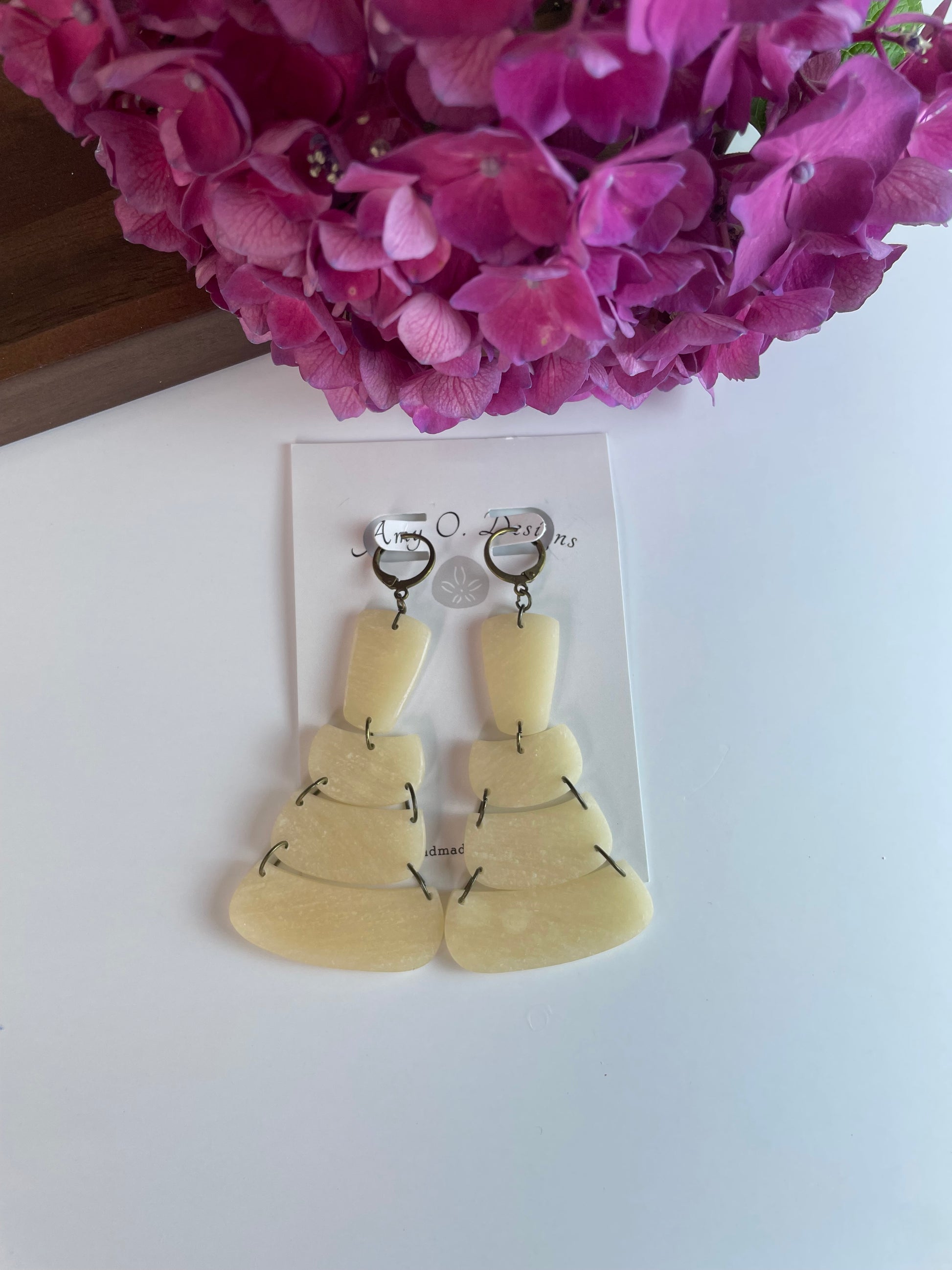 4 tier, translucent drop, dangle earrings w/brass huge closure.